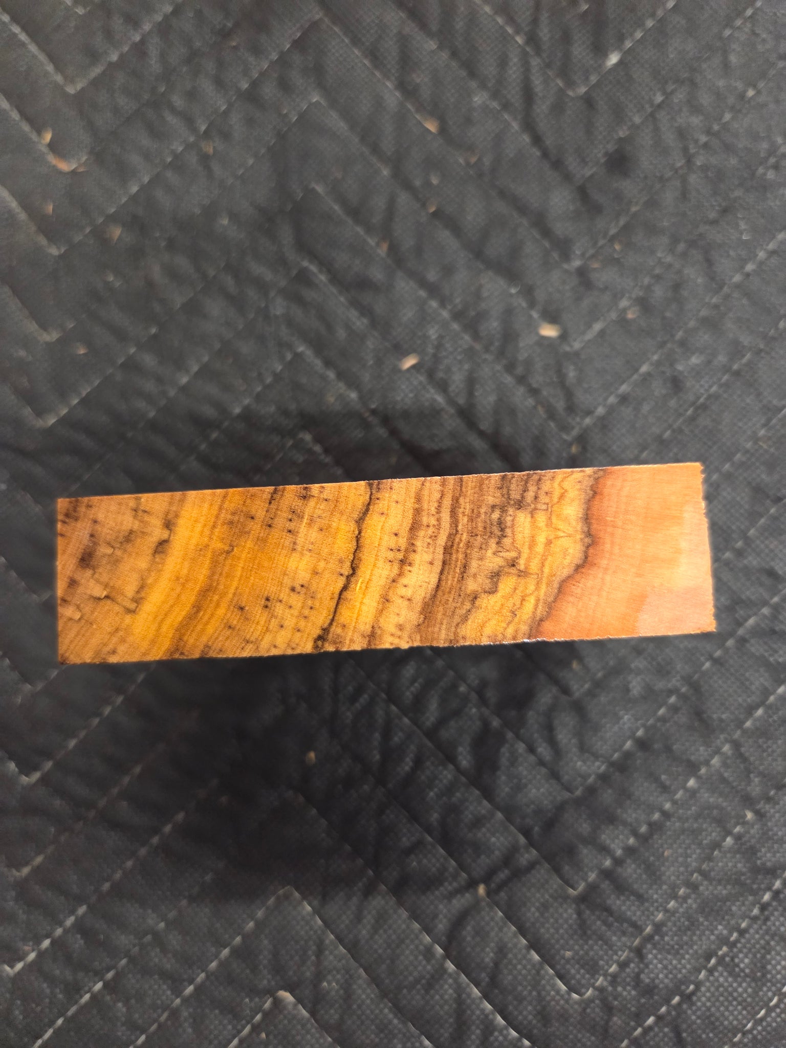 African Olive is a striking exotic hardwood valued for its warm golden-brown tones, dark chocolate veining, and naturally oily luster. The dramatic contrast between heartwood and darker streaks gives each blank a refined, organic character that stands out in finely crafted pieces.